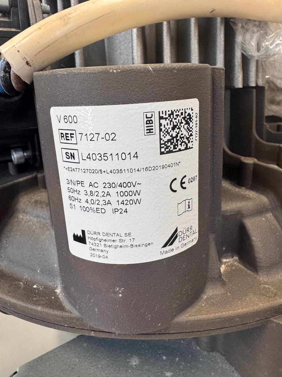 Характеристики стоматологічної аспіраційної помпи Dürr Dental V 600 S (суха аспірація, ~2019 рік випуску)